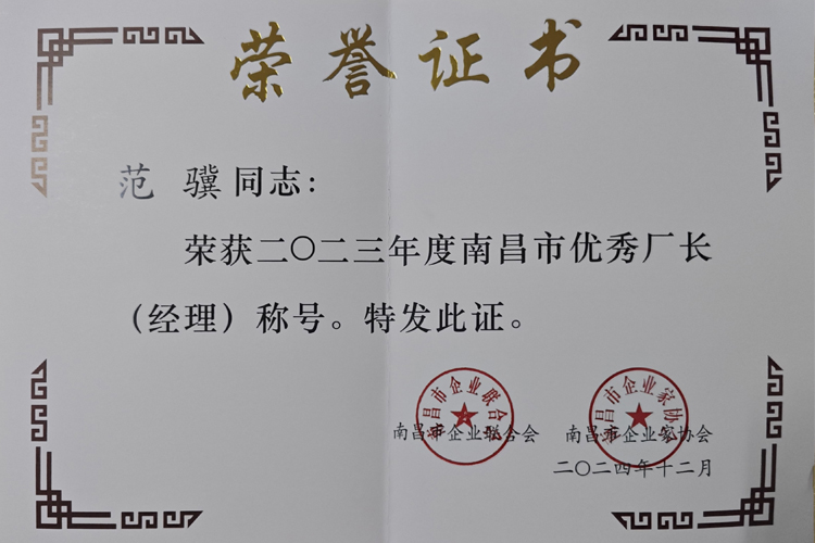 近日,南昌市企業(yè)聯(lián)合會(huì)、南昌市企業(yè)家協(xié)會(huì)正式發(fā)布《關(guān)于表彰2023年度南昌市優(yōu)秀企業(yè)、優(yōu)秀企業(yè)家、優(yōu)秀廠長(zhǎng)(經(jīng)理)的決定》。公司憑借卓越的綜合實(shí)力與突出的社會(huì)貢獻(xiàn),榮獲“2023年度南昌市優(yōu)秀企業(yè)”稱(chēng)號(hào);公司董事長(zhǎng)丁杰獲評(píng)“優(yōu)秀企業(yè)家”,總裁范驥獲評(píng)“優(yōu)秀廠長(zhǎng)(經(jīng)理)”。